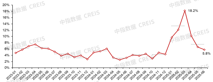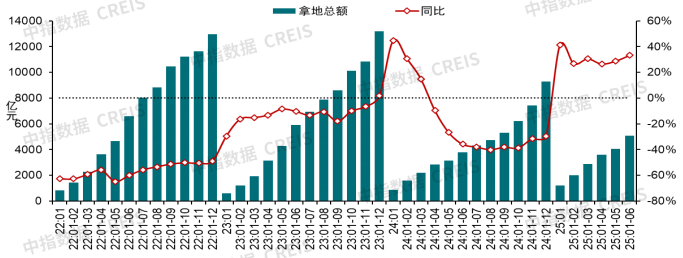 图:2022年至2025年1-6月TOP100房企累计发卖额均值及增速环境