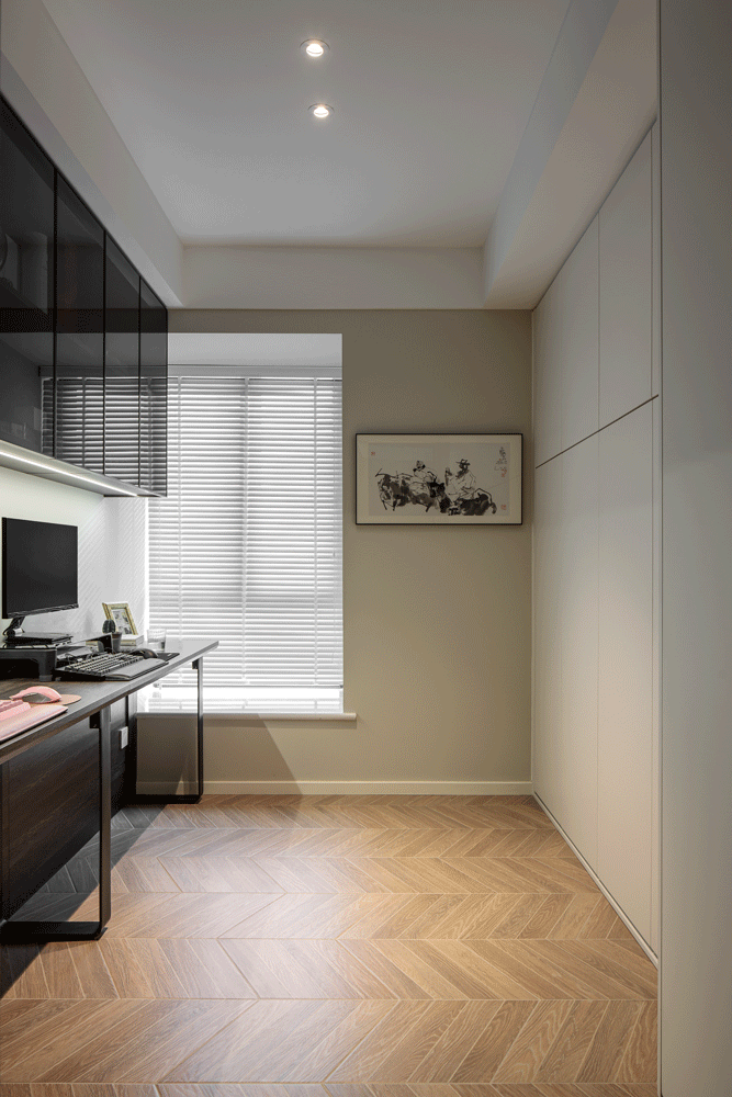 书房采用通明推拉门,厨房内部区别于外部空间,