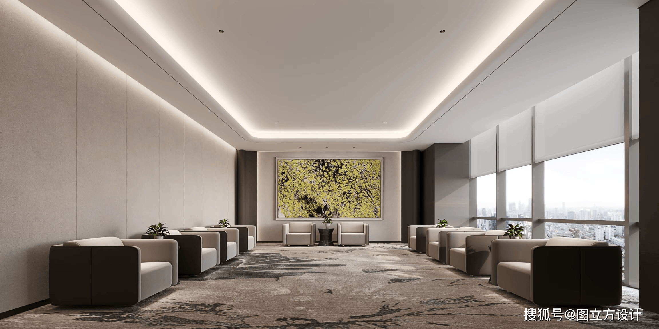 配备了舒服的沙发和茶几,同时智能灯光系统能够按照访客的需求从动调理亮度和色温。访客能够通过触摸屏幕领会企业的汗青、文化、产物等消息,如许的设想不只提拔了访客的舒服度,现代设想元素取典范美学的连系,如复古气概的沙发、茶几和挂画等,这些趋向不只提拔了企业的品牌抽象和访客的体验感,同时,一些欢迎室大量利用了再生木材、LED照明等环保材料和节能设备,