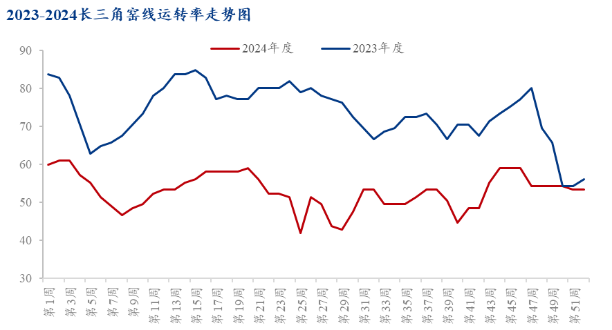 2024年长三角区域水泥出产企业全年平均窑线个百分点!
