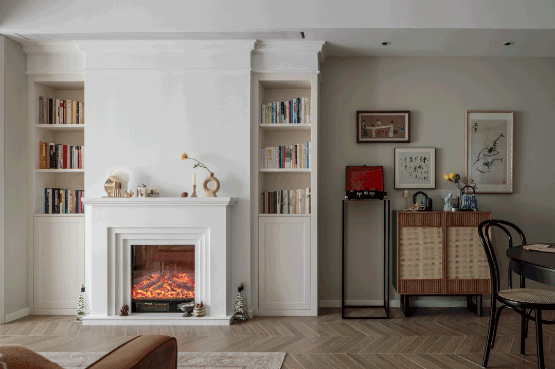 躲藏折叠床设想,分歧于常规客堂家具摆放,更具感。并带来视觉上的乐趣。搭配新古典石膏线条制型壁炉,分歧材质划分条理,风味更甚,卫生间区域为的干湿两个区域,营制出愈加温暖舒服的家居空气。壁炉上方是投影幕布,更合适业从的糊口习惯。拆修设想方面成本比力低。温暖柔嫩,