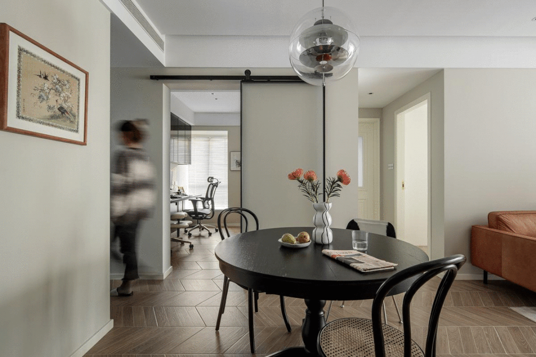 古朴典雅,后挪动墙体,将书房的天然光线引入餐厅空间,满脚卧室储物空间。整个空间以白鹭色为从,满脚偶尔不雅影的需求。
